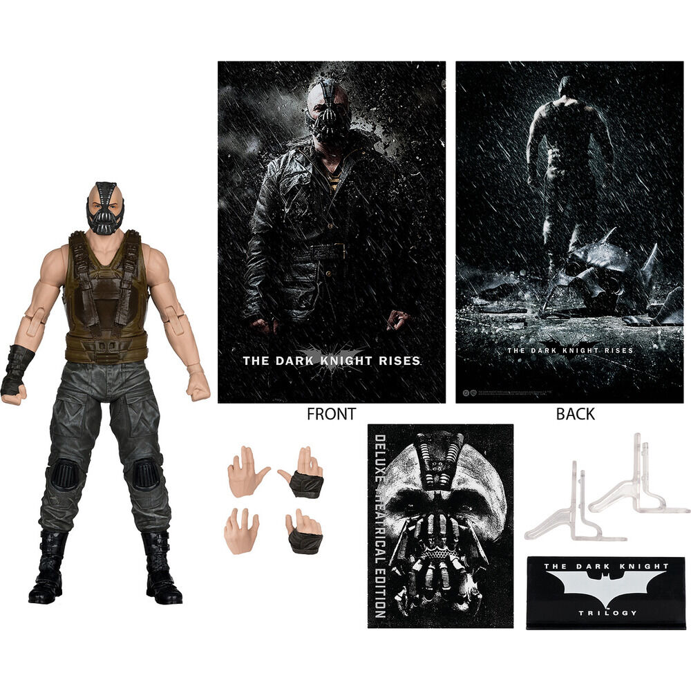Mcfarlane añade a su línea Deluxe Theatrical Edition la figura de Bane, inspirada en su aparición en la película "The Dark Knight Rises" (El Caballero Oscuro: La leyenda renace en España) de DC Comics. Mide aproximadamente 19 cm e incluye 4x manos intercambiables, 1x base, 1x tarjeta coleccionable con soporte y 1x mini póster. Se presenta en una caja con ventana.