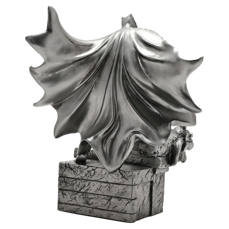 Esta detallada figura de resina muestra a Batman encaramado sobre una gárgola mientras observa Gotham City a sus pies.