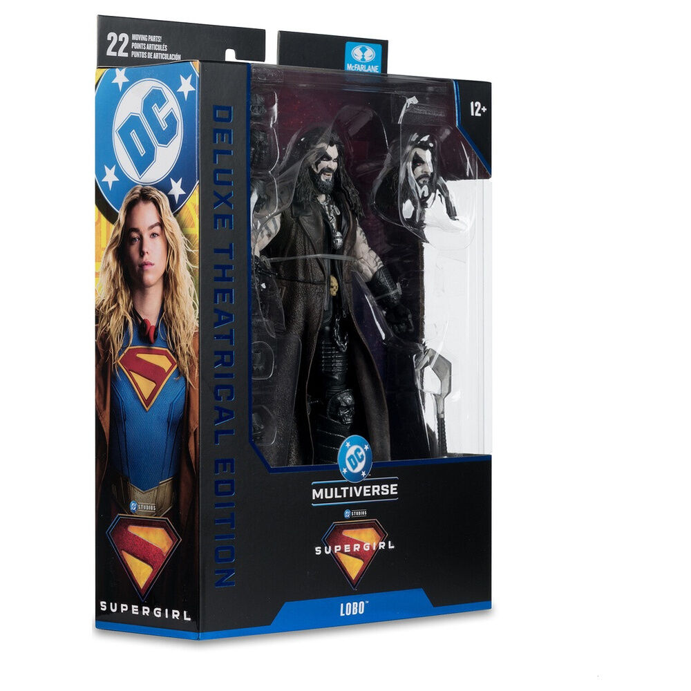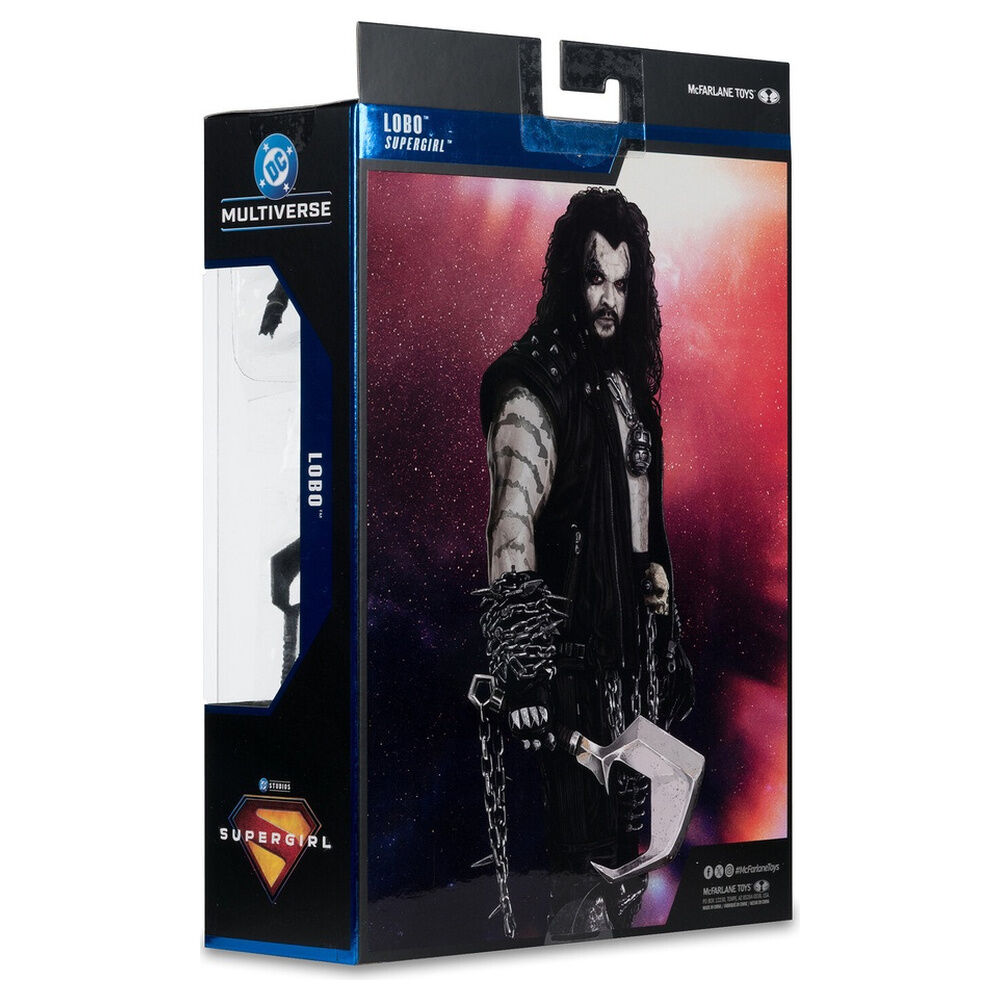 Mcfarlane toys lanza la figura de Lobo, inspirada en su personaje en la película "Supergirl". Mide aproximadamente 18 cm y presenta gran nivel de detalle con diseño fiel al personaje. Cuenta con Ultra Articulation con hasta 22 puntos e Incluye 1x gancho con cadena, 5x manos adicionales, 1x cabeza intercambiable y 1x base expositora. También incorpora 1x tarjeta coleccionable con arte del personaje y biografía. Se presenta en una caja con ventana.